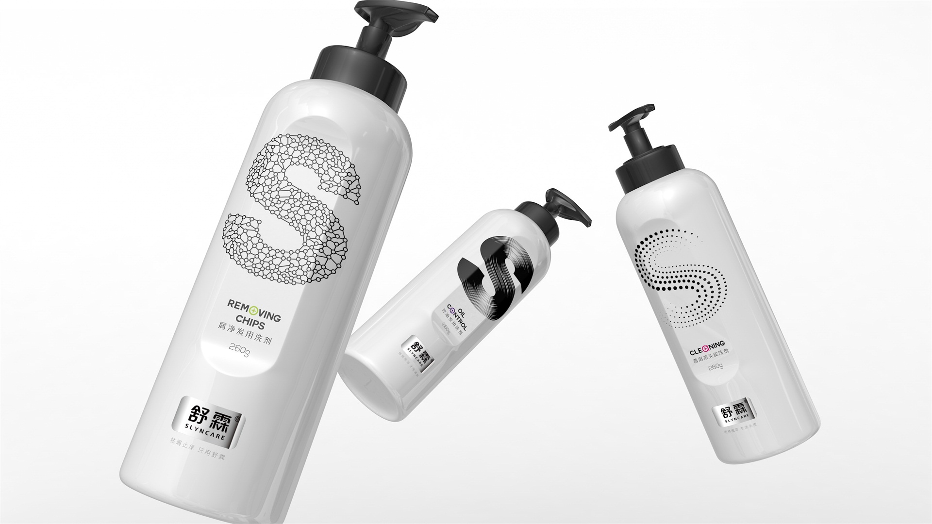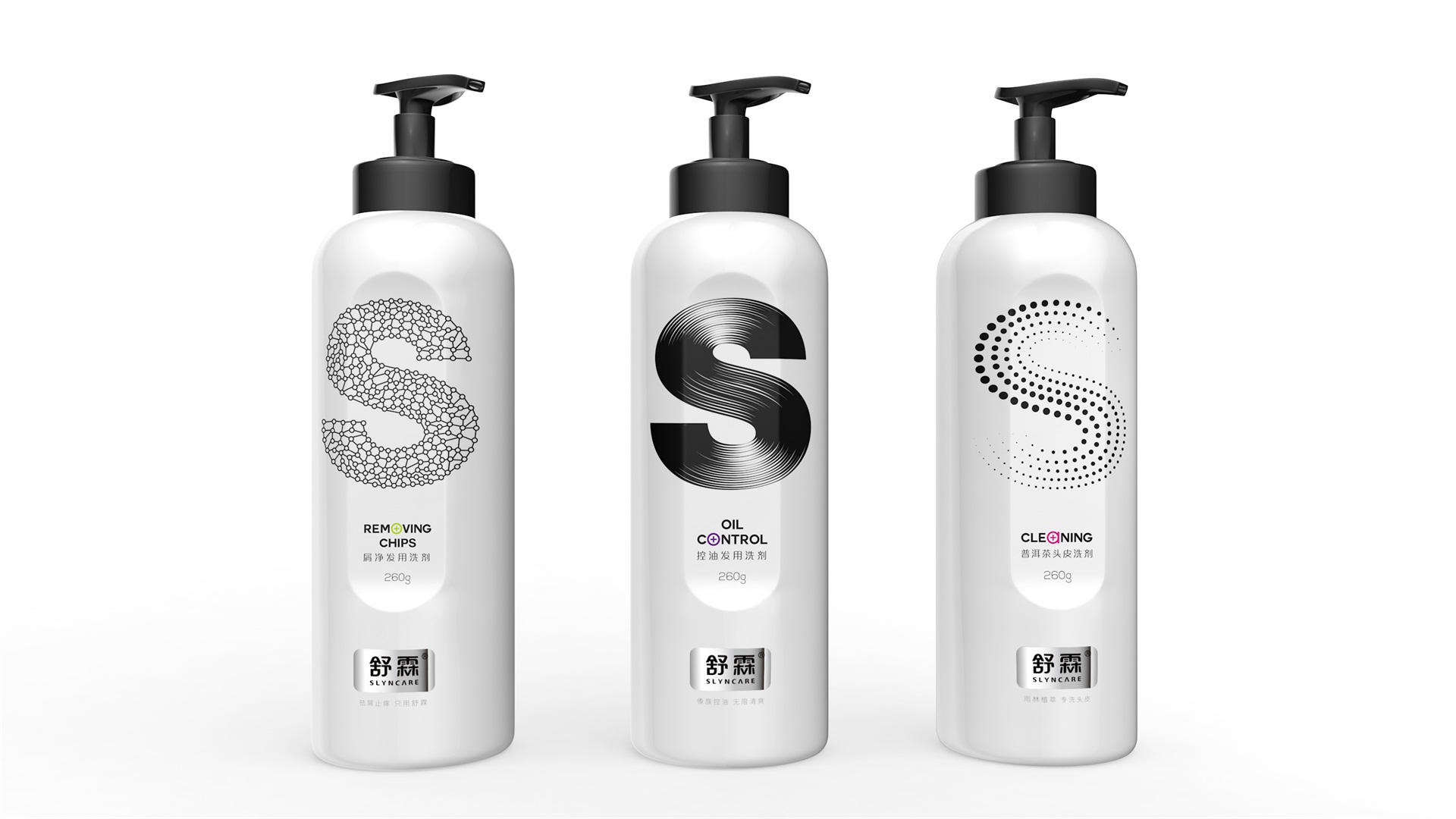 在包裝設計上,我們以凸顯舒霖品牌專業養發護發的理念為基準,輔以一定的自然醫藥屬性,將舒霖首字母化“S”為形象視覺符號,體現舒霖美發沙龍級的專業護發品牌形象,簡約、國際、大氣。