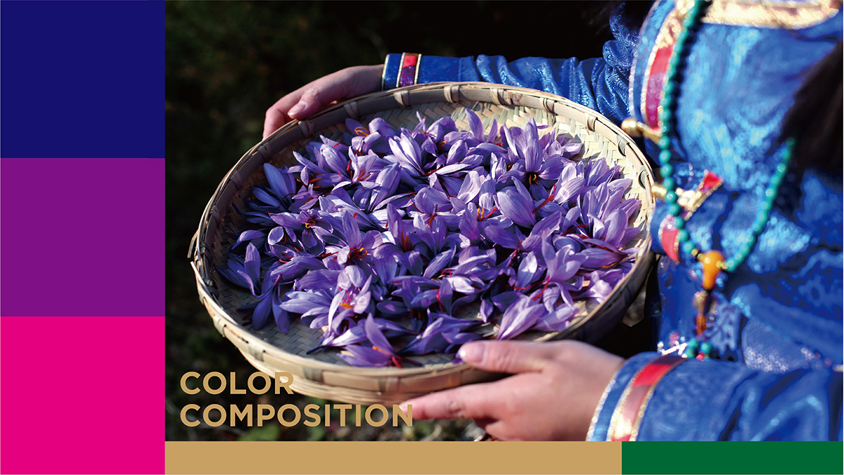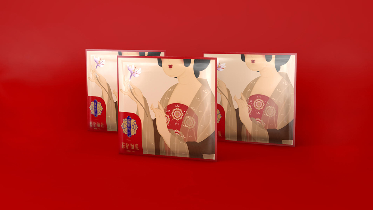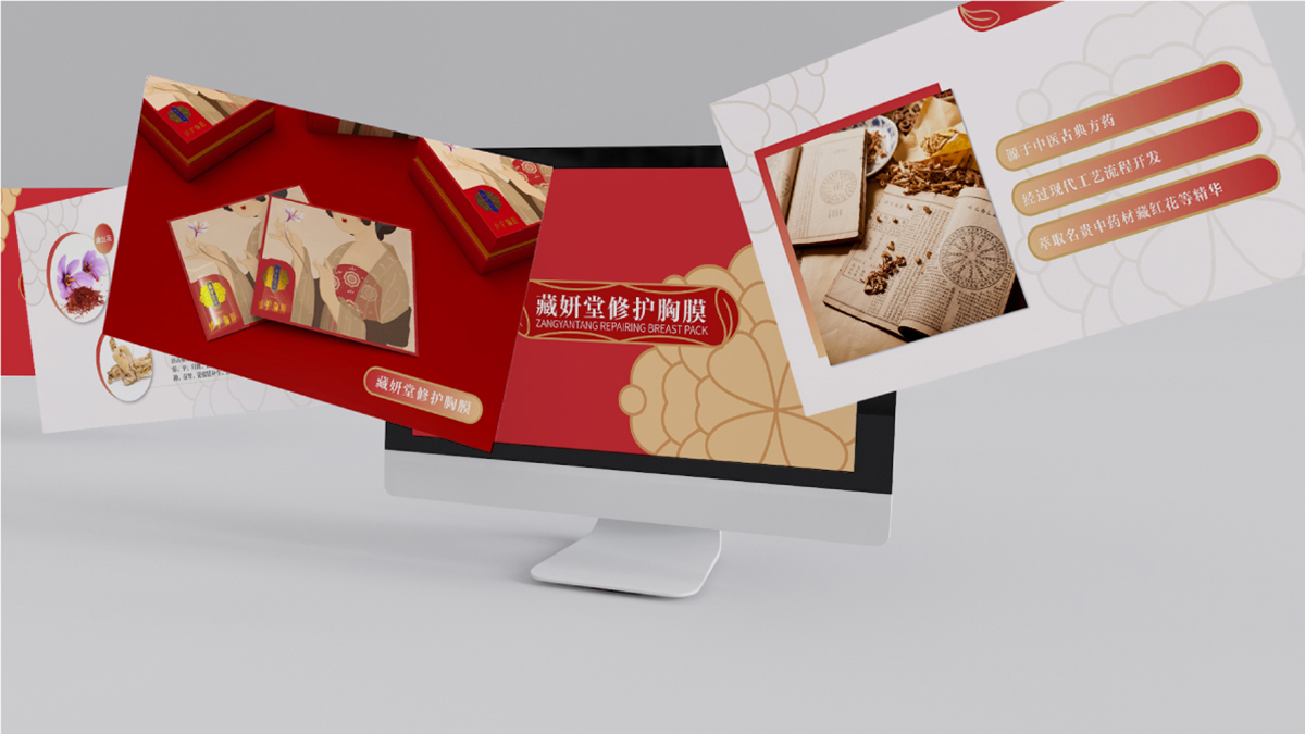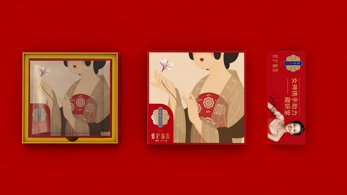 LOGO從格桑華和藏紅花的意向中延伸出抽象的花型,花型蜜而繁,藏味十足,同時用花象征女性,而格桑花本身的寓意使得意象具有呵護、關愛女性的價值觀導向,藏紅花的色彩提取則直接傳達了藏妍堂堅持中藥提取的健康態度。