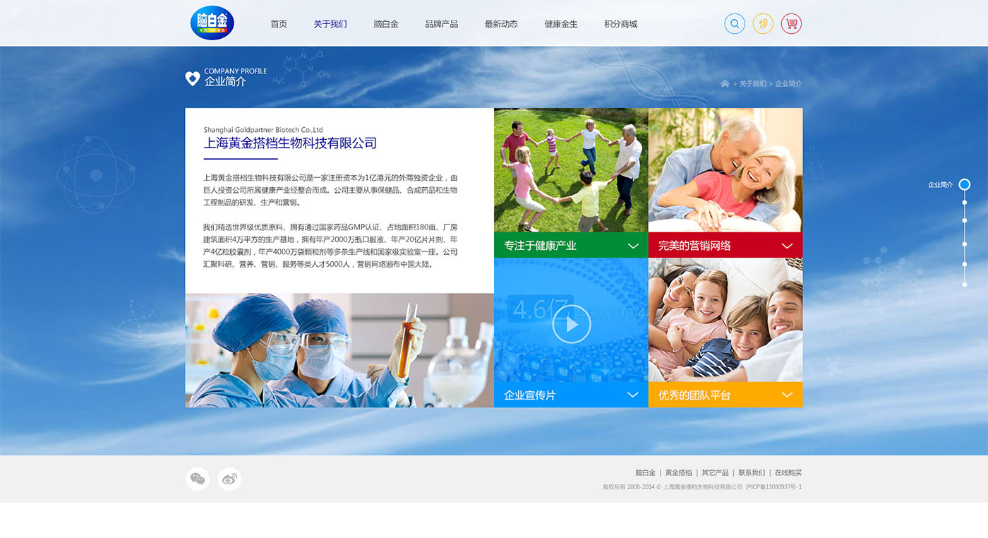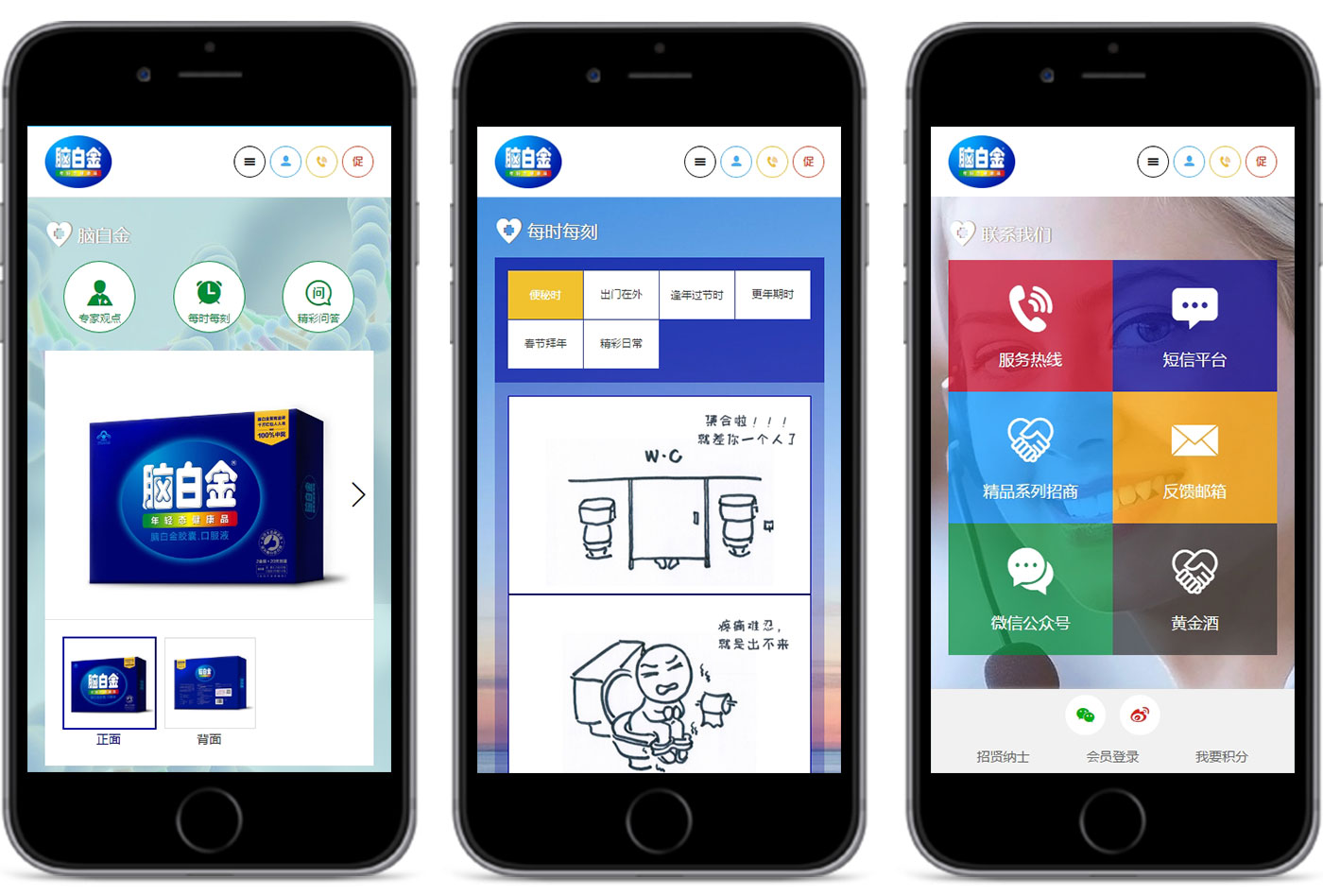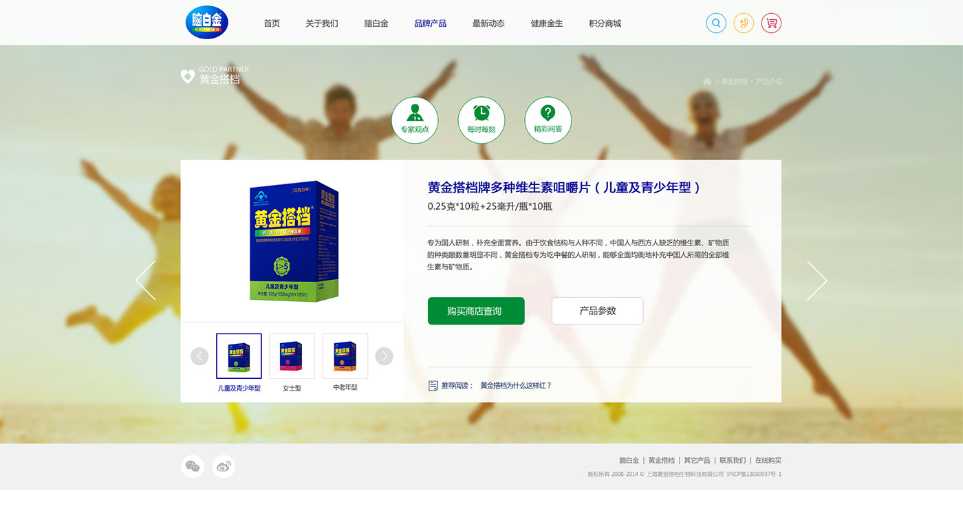助騰服務腦白金官網升級改版,圍繞“年輕態,健康品”的品牌Slogan為核心設計理念,板塊內容一屏呈現,簡約清晰明了,嚴謹的表達黃金搭檔作為一家生物科技公司的屬性,大膽的配色遵循品牌VI識別規范,彰顯了腦白金始終傳播與倡導健康,活出年輕態的品牌理念。