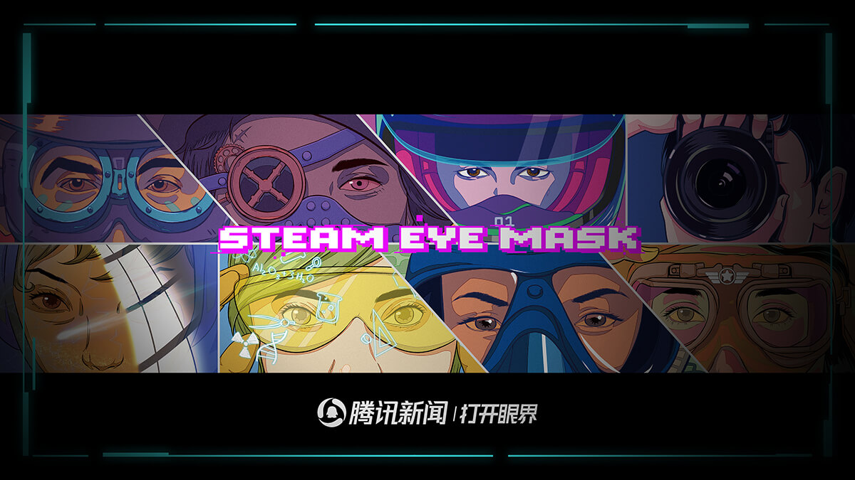 蒸汽眼罩整體設計風格采用帶有豐富色彩的賽博朋克風,以平面線條著色的繪畫風格,著重面部細節的刻畫和色彩表達,體現出不同職業的面部特性,與使用者有趣味性互動。