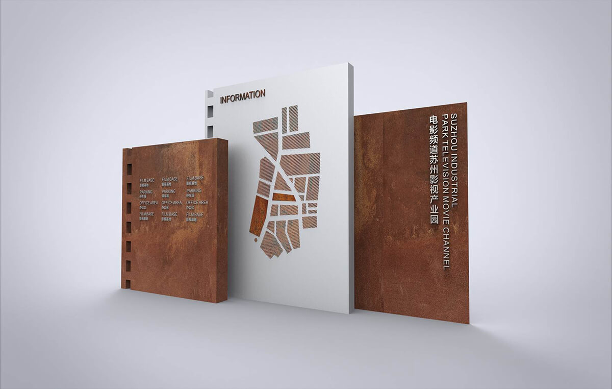 為其設(shè)計的環(huán)境導(dǎo)示系統(tǒng)。采用電影膠片概念風(fēng)格,以及故意做銹的重工業(yè)設(shè)計風(fēng)格,極具時代藝術(shù)感。