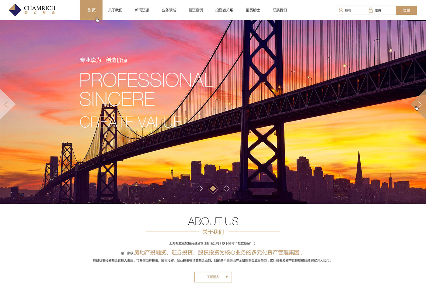 乾立基金作為具有雄厚實力的專業資產管理集團,其專業的投資管理建議,高品質的金融產品和服務受到業界人士的青睞。此次助騰為其提供全新的網站設計升級服務,以樹立新品牌戰略需求和品牌形象傳播,高清大圖的呈現彰顯乾立基金實力雄厚,嚴謹的細節設計寓意乾立基金注重細節,勇于開拓勇于創新的精神。