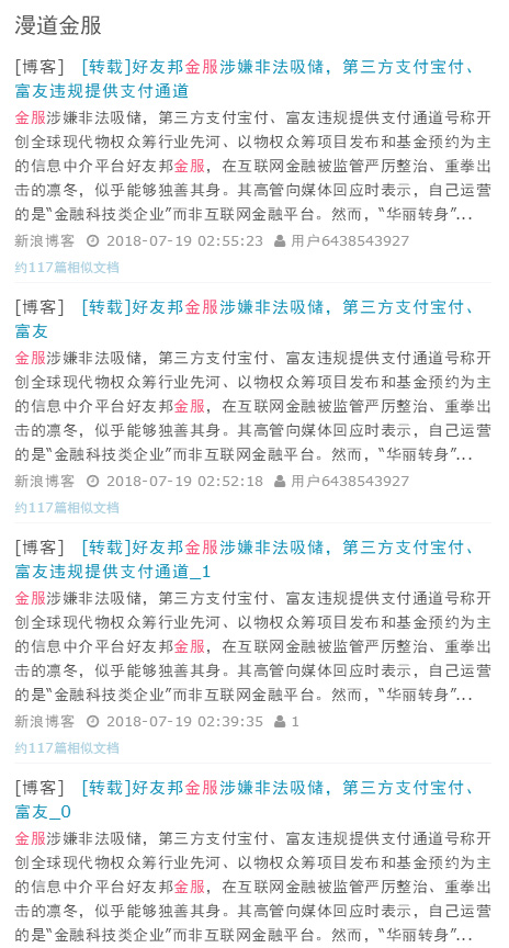 漫道金服項目主要為客戶提供口碑信息優化服務,針對互聯萬上不實發聲信息進行投訴處理。日常工作主要是正面信息引導及發布,提供企業在互聯網上面良好信息露出,保證用戶在搜索漫道金服關鍵詞時可以展現出正面信息,以及公司最新新聞活動信息內容。
